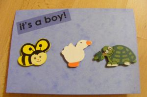 I made a little card as well, using some tiny wooden animals that I had. Making baby things makes me so broody – only 16 weeks to go until I meet my own little one!