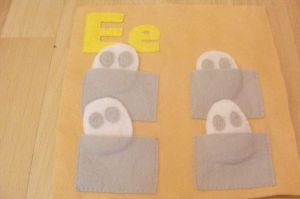 E is for Eggs. These little eggs have cheeky smiling faces, and slot into the egg boxes.