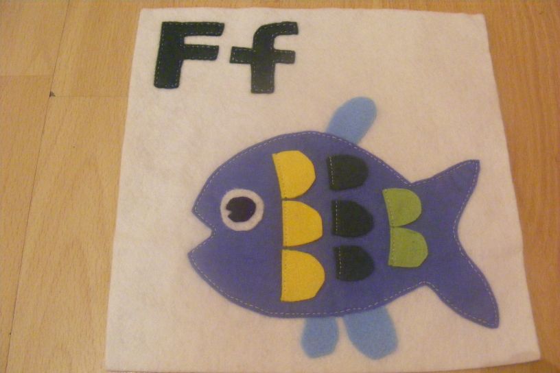 F is for Fish. The scales are going to be numbered with 3D fabric paint at some point.