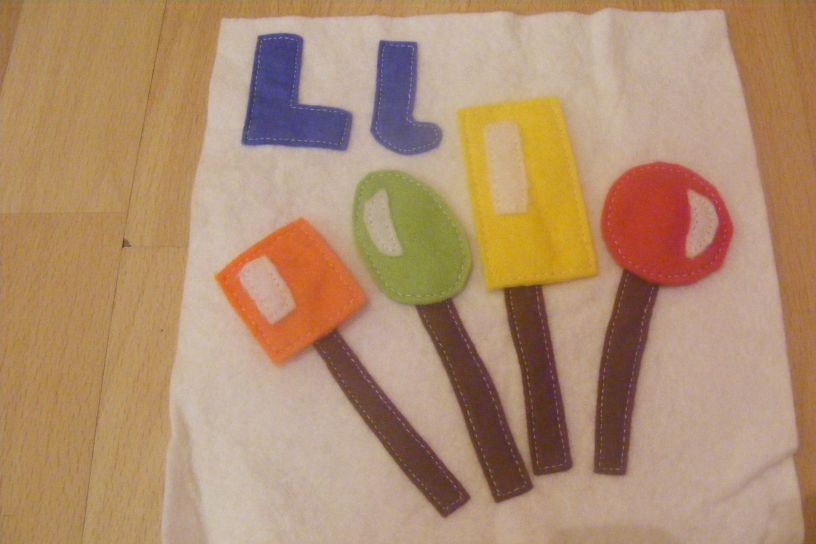 Finally, L is for Lollipop. The lollipop heads are all velcroed so they can be put on different sticks.