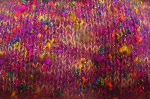 I think I will adapt it so that I knit in the round to the armholes, then divide for front and back, making a wide strapped bodice. Then crochet edging in a contrasting purple, perhaps adding sleeves in the purple as well. I do love to experiment. Watch this space!
