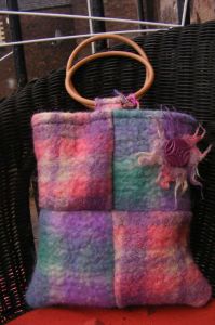 I was inspired to make the bag by a larger version that I sewed yesterday, when I was getting together some stock for the gallery. This one was made with felted scarves that were hand woven in Ireland, found in one of my local charity shops.