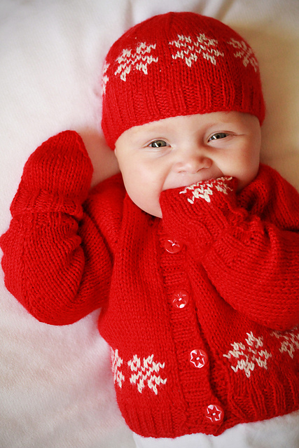 First up is the Little Snowflake baby set. This little set fits babies from 0-3 years, in four different sizes. The cardigan is knitted in one piece to the armholes, with a simple stranded snowflake design. The mitts have thumbs in the largest size. The set is designed in Patons Diploma Gold DK, a lovely warm yarn which is machine washable, always good when knitting for babies. The pattern is available now, for only £3.50.