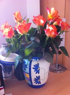 Today is a bright, cheerful, spring Monday morning. The rain from last night is a distant memory in the puddles on the pavement, and the sun is shining. I can hear birdsong outside my open window, and these gorgeous roses (20p from Tesco!) are brightening up my bedroom.