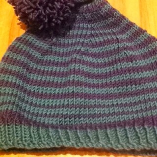 It’s been a month for baby knitting, as I then managed to finally use up my Debbie Bliss Baby Cashmerino stash. This yarn is an absolute dream to work with, so soft, and knits up into beautiful garments, the only drawback is that it’s pretty expensive. I used it to make a pair of tiny baby socks from Debbie’s book “Simply Baby”, and then adapted a nightcap pattern to make a little bobble hat.