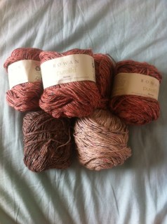 I didn’t have enough yarn to crochet anything big, and I didn’t really have the money to go out and buy more. Then I remembered that I had a lot of Rowan Revive yarn in my stash, which I had won in a competition ages ago, and never done anything with. It’s made of recycled silk, cotton and viscose, and has a rather rough texture.