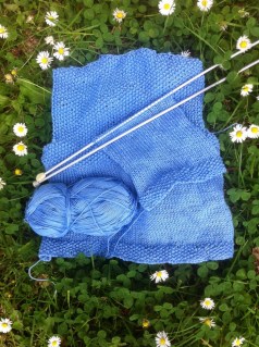 Today has been a good day. It’s been warm enough to get out into the park, and do a bit of outdoor knitting. The sun is refusing to put in an appearance, but at least there’s no rain. I made progress on my cotton baby jacket. The back is finished, and I’m halfway up one of the fronts. I love the way the textured moss stitch looks in the cotton, and I can’t wait to see how this will look when it’s all sewn together.