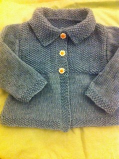 I finally finished the little cotton jacket for my cousin’s baby. I love the pattern, it’s very simple and classic, and also quite unisex. It’s a Sirdar design, published in Knitting magazine a few years ago.