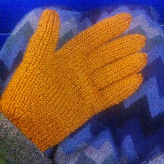 The mustard coloured Karisma jumped out at me as perfect glove yarn. It’s woolly, warm, and has a great squishy feel to it. Both gloves took four hours to knit, tops. Not even exaggerating! It’s a brilliant pattern (called Toasty Tweed, by the way), and apart from having to do seaming, I can’t find fault with it. So now I have warm hands, and I may well dig into my stash and replace the fish mittens at my leisure, some time in the future!