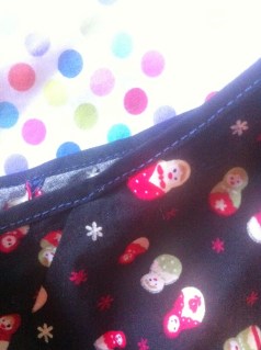 I’m still working my way through old and long-forgotten projects, and today I decided to finish sewing a dress. About three years ago, I got a wave of enthusiasm for dressmaking. I went to Remnant Kings, chose a lovely cotton printed with Russian dolls, picked a pretty summer dress pattern, brought the whole thing home, cut it out – and then my sewing machine broke. The dress has been sitting in a box, in pieces, ever since. Every now and again I’ll take it out, look at it, and then leave it for another day.
