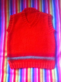 Since I was having a super productive day, I also finished knitting a wee tank top to use up a bit of my yarn stash. It’s orange, red and green, but the colours don’t show up very well in this picture. Now for a bit of crochet and Netflix to finish the day!