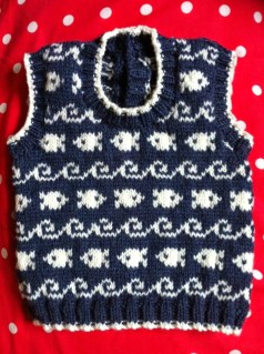 This is a hard question for me to answer, because I don’t feel that I design enough to have a clear style. It is something that I’ve thought about, from a marketing point of view, if it’s better to make things that people can easily identify as yours. However, I tend to make things that I love, and I have quite wide and eclectic tastes! Talking about my design work, I enjoy working with texture and colour, particularly cables and fair isle. I like taking adult designs and reworking them for children, and my notebook is full of ideas that I haven’t knitted up yet. My “Wicket” sweater is one of my favourites, and something that I’ve made for quite a few gift knits.